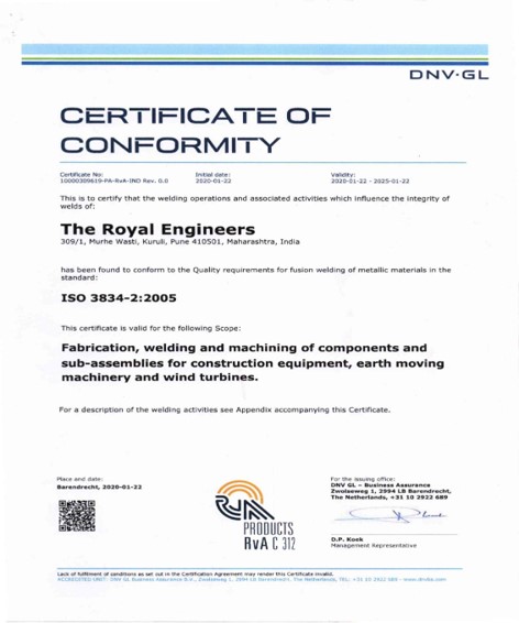 With ISO 9001:2015 and ISO 3834-2:2005 certifications, along with MPCB and PGCIL approvals, we uphold the highest standards of quality and safety. Our skilled team and advanced infrastructure enable us to serve industries such as mining, cement, steel, power, oil & gas, sugar, wind energy, and infrastructure.